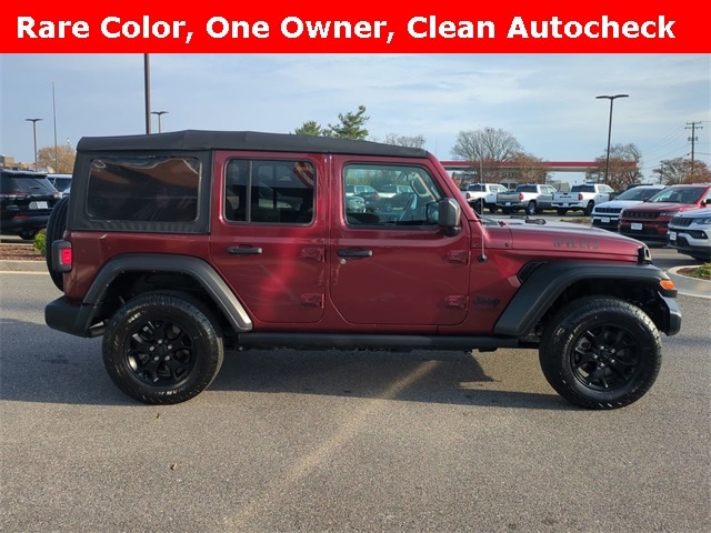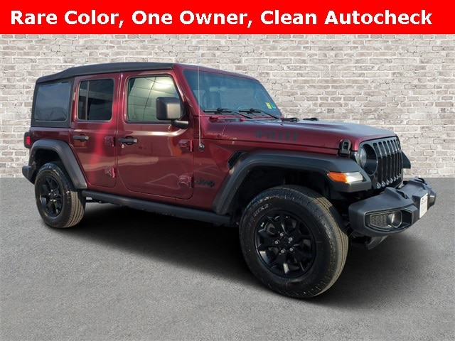 Snazzberry Pearlcoat 2021 Jeep Wrangler Unlimited Willys 4WD 8-Speed Automatic 3.6L V6 24V VVT Fresh Oil Change, 240 Amp Alternator, 3.45 Rear Axle Ratio, 4-Wheel Disc Brakes, 4-Wheel Drive Swing Gate Decal, 7 & 4 Pin Wiring Harness, 700 Amp Maintenance Free Battery, 8 Speakers, ABS brakes, Air Conditioning, AM/FM radio, Anti-Spin Differential Rear Axle, Auxiliary Switches, Black Grille, Black Trail Rated Badge, Class II Receiver Hitch, Cloth Low-Back Bucket Seats, Compass, Cruise control, Deep Tint Sunscreen Windows, Delay-off headlights, Driver door bin, Dual Door Group w/Base Uppers, Electronic Stability Control, For More Info, Call 800-643-2112, Front 1-Touch Down Power Windows, Front Bucket Seats, Front fog lights, Front reading lights, Half Doors w/Uppers, Matte Black Jeep Badge, Mold In Color Bumper w/Gloss Black, MOPAR All-Weather Floor Mats (DISC), Normal Duty Suspension, ParkView Rear Back-Up Camera, Power Heated Mirrors, Power steering, Quick Order Package 25K Willys Sport (DISC), Radio data system, Radio: Uconnect 3 w/5" Display, Remote Keyless Entry, SiriusXM Radio Service, SiriusXM Satellite Radio, Speed Sensitive Power Locks, Steering wheel mounted audio controls, Tachometer, Telescoping steering wheel, Tilt steering wheel, Trailer Tow & HD Electrical Group, Wheels: 17" x 7.5" Moab Black Aluminum, Willys, Willys Hood Decal, Wrangler Decal.